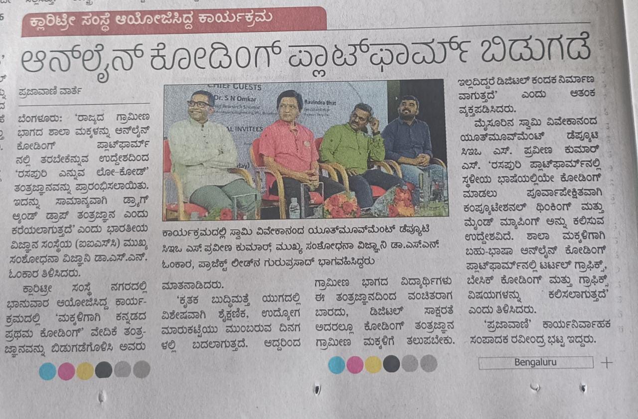 Launch Event of Raspuri 1.0 at Vidyarthipatha, Yuvaka Sangha, Jayanagar, Bangalore