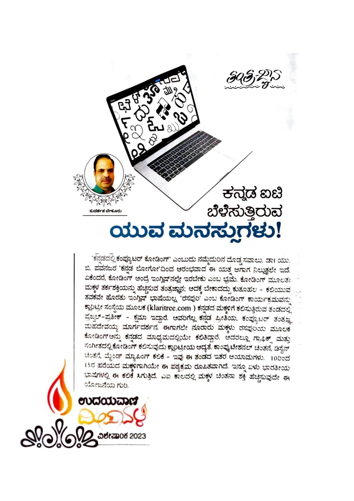 IT in Kannada-an article in kannada by Beluru Sudarshana a Language-Technology Enthusiast